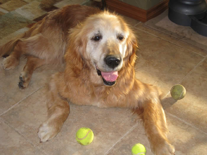 Update on Sam: Sam became a part of our family at the end of May 2009 and left us on April 20, 2011 due to a lung tumor and laryngeal paralysis. When we adopted Sam, he had been found by an animal control officer and taken to the shelter. He was so emaciated that they didn't think he would live! Well, they hadn't seen "Dr. Ro" at work. We adopted him and he became a happy, goofy boy who loved his "tenny balls". He loved his toys and carried them in his mouth on the walk every day! Sam was a clown and we miss him very much.. In the pictures below you will see Sam's progress from a scrawny, sickly dog to the handsome boy he became after some medical attention and TLC.
