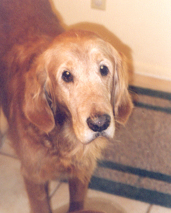 Mom and Dad thought I had the sweetest face. Well, the new morning they flew me home on a great big airplane. That part was kind of scary but it was well worth it. I now live in a very big house with five other Goldens and a huge backyard. And you know what, those people who owned me before were wrong. I am housebroken. They just didn't want me because they thought I was too old. Mom lets me snuggle up next to her on the couch at night and I don't like letting her out of my sight. I still worry that she might take me back to the kennel even though she says "hell will freeze over before that happens". She has put my picture on this page so you can see how sweet I am.